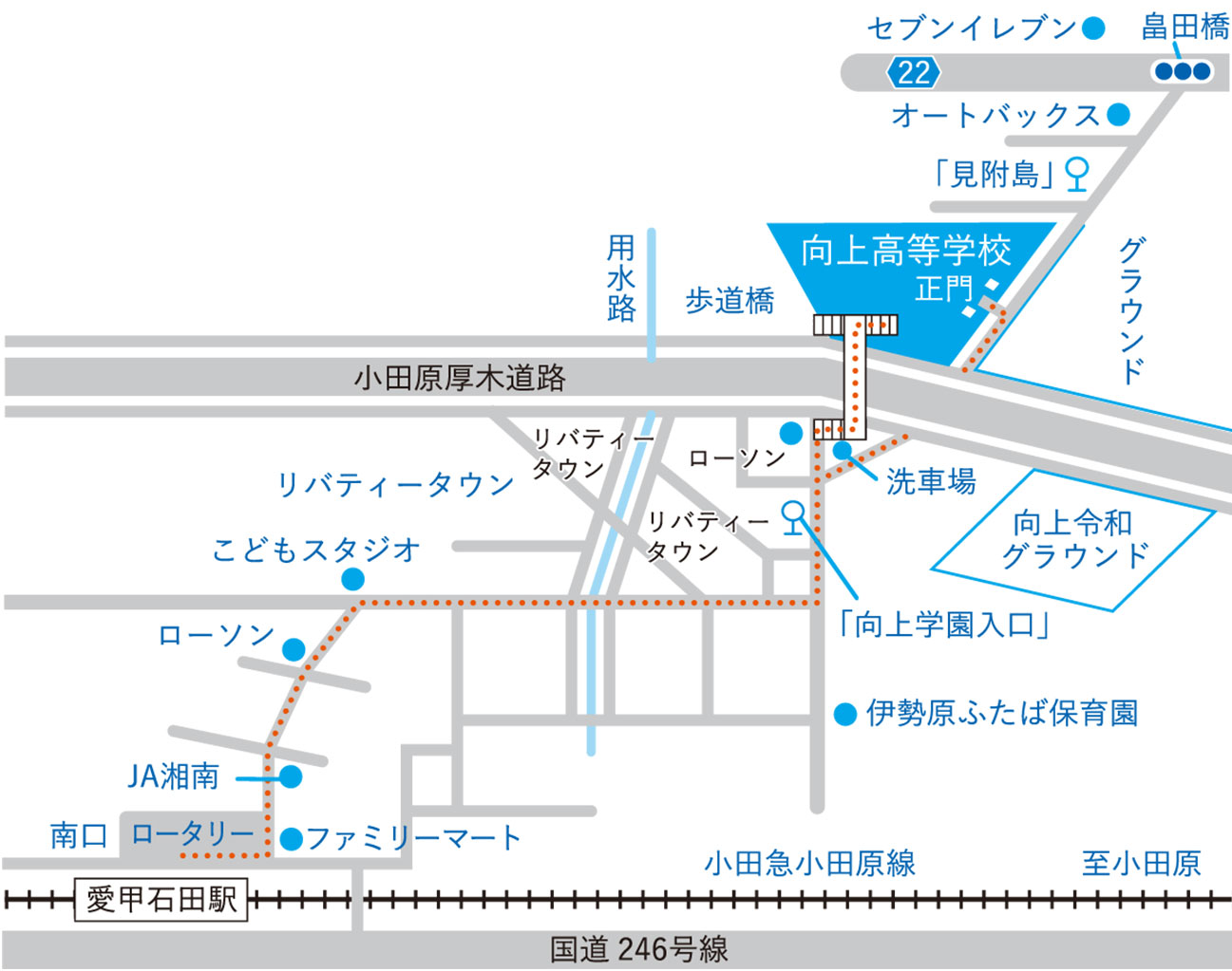 時刻により駅と学校の直通ルート(直行便)を通る場合がございます。