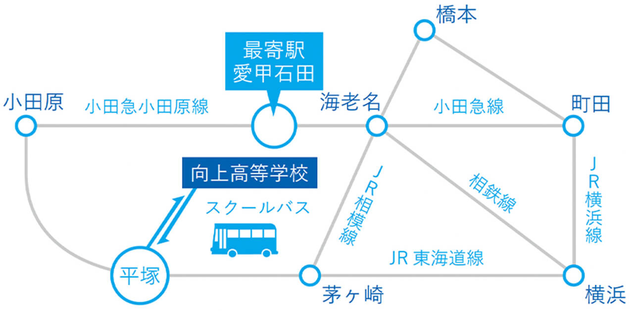 JR平塚駅南口よりスクールバスにて30分